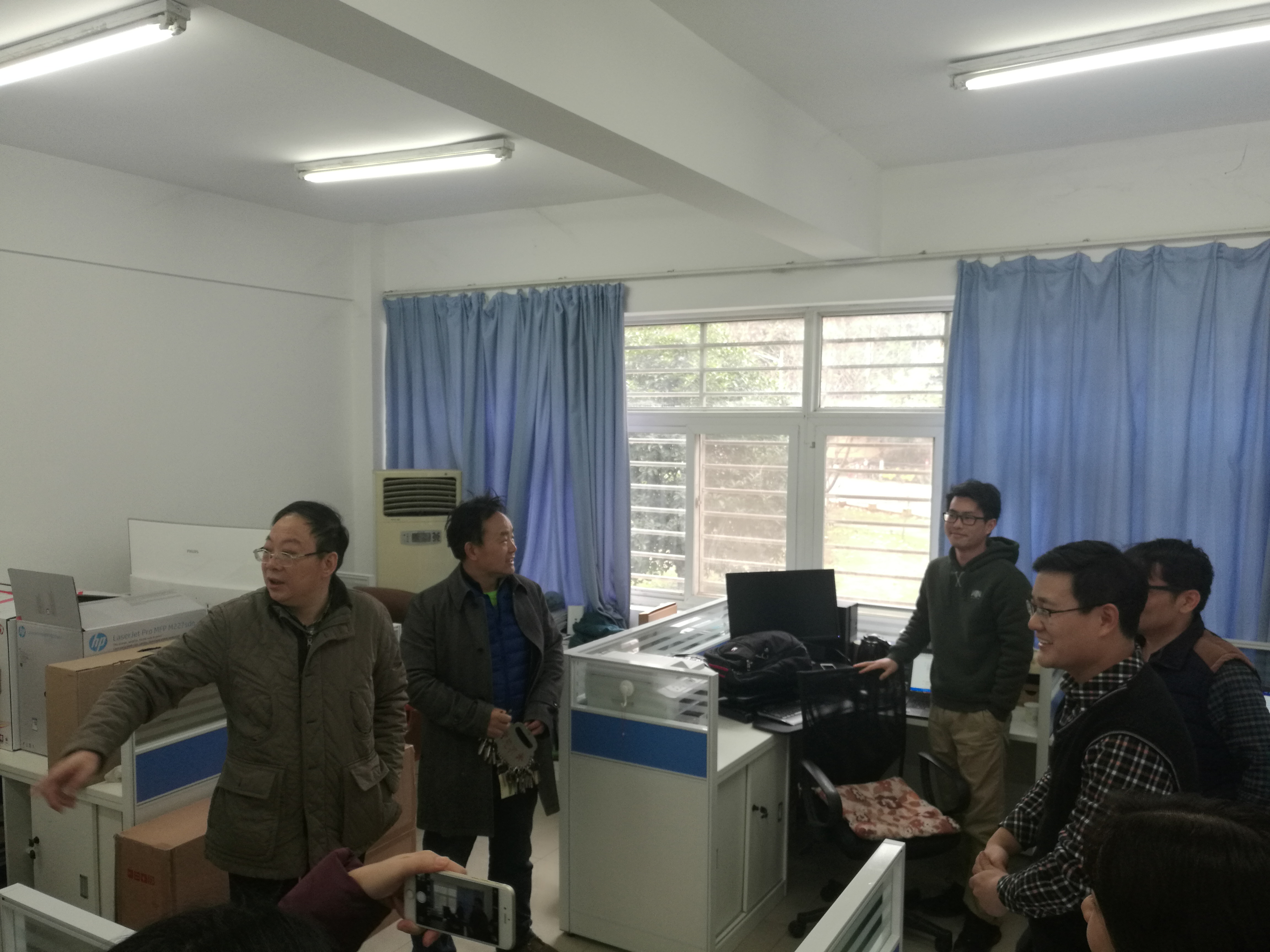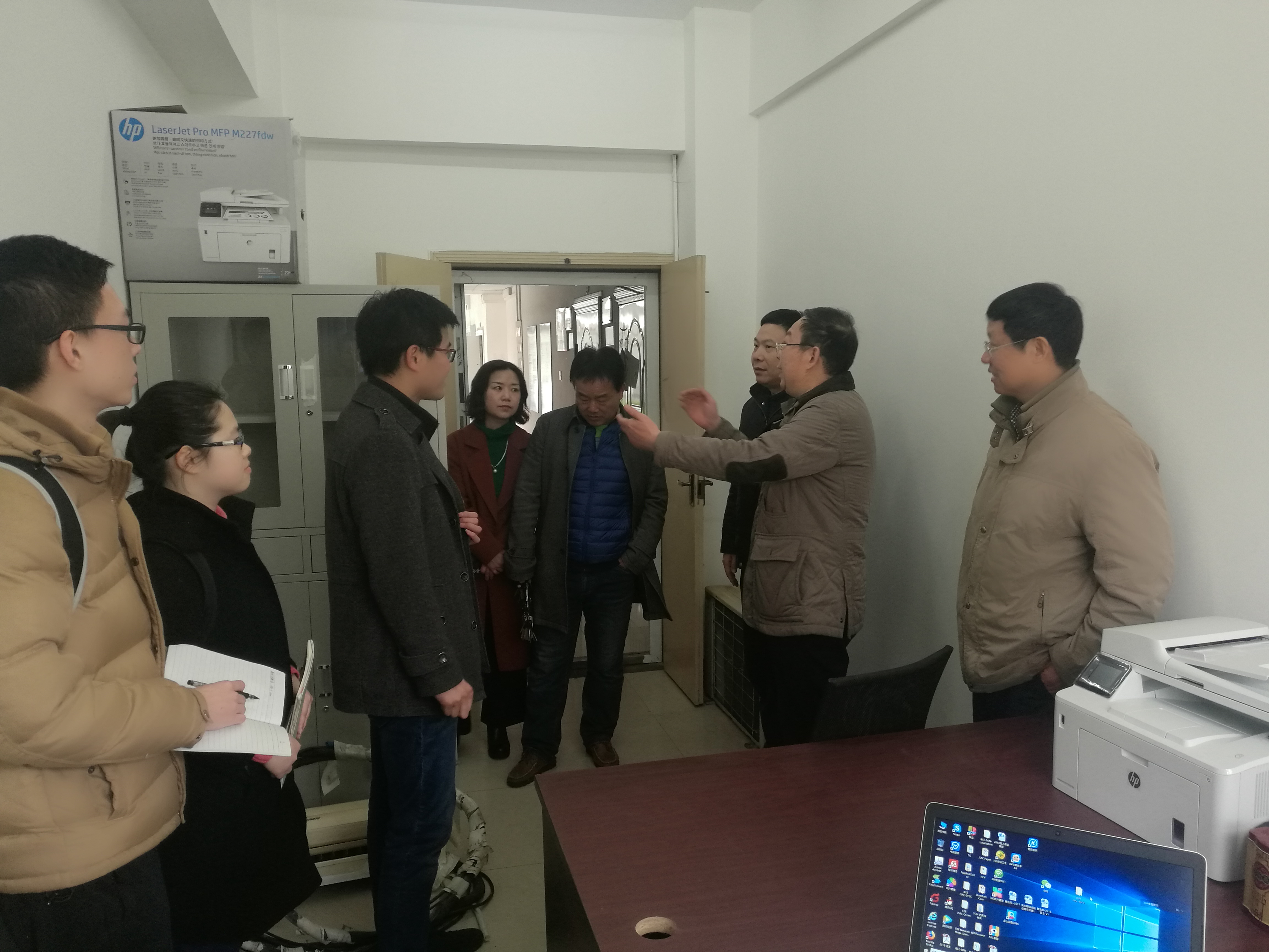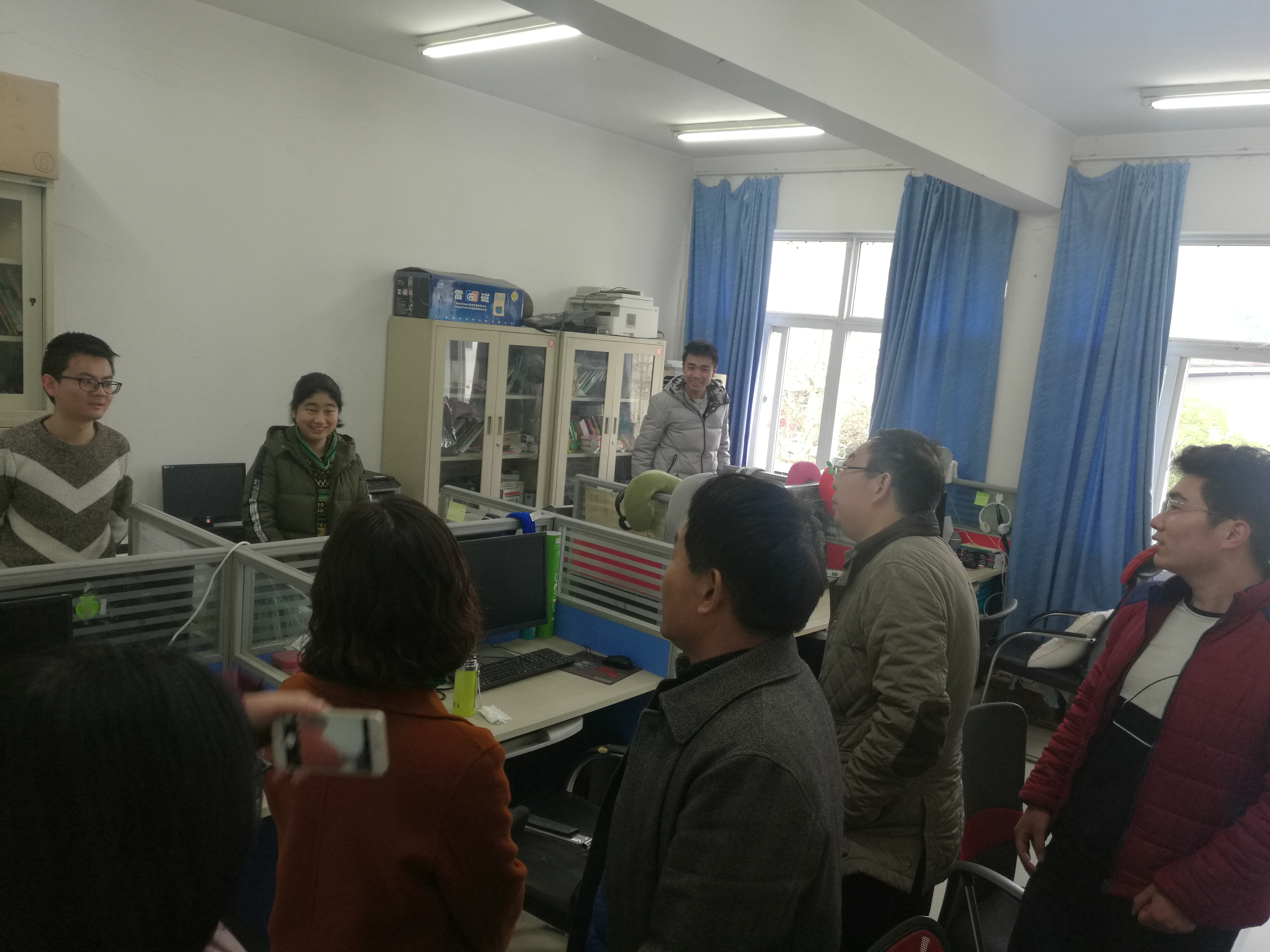 (通讯员:石剑峰)3月1日是我校新年开学的第一天。成人av 党委书记吕军、副书记孙莉、副院长李振华同志在院办公室同志的陪同下深入学院的各办公室、实验室等地走访。亲切看望慰问师生,向大家致以新春的祝福和问候,同时检查、指导、布置开学有关工作,了解行政人员到岗和学生到校情况等。