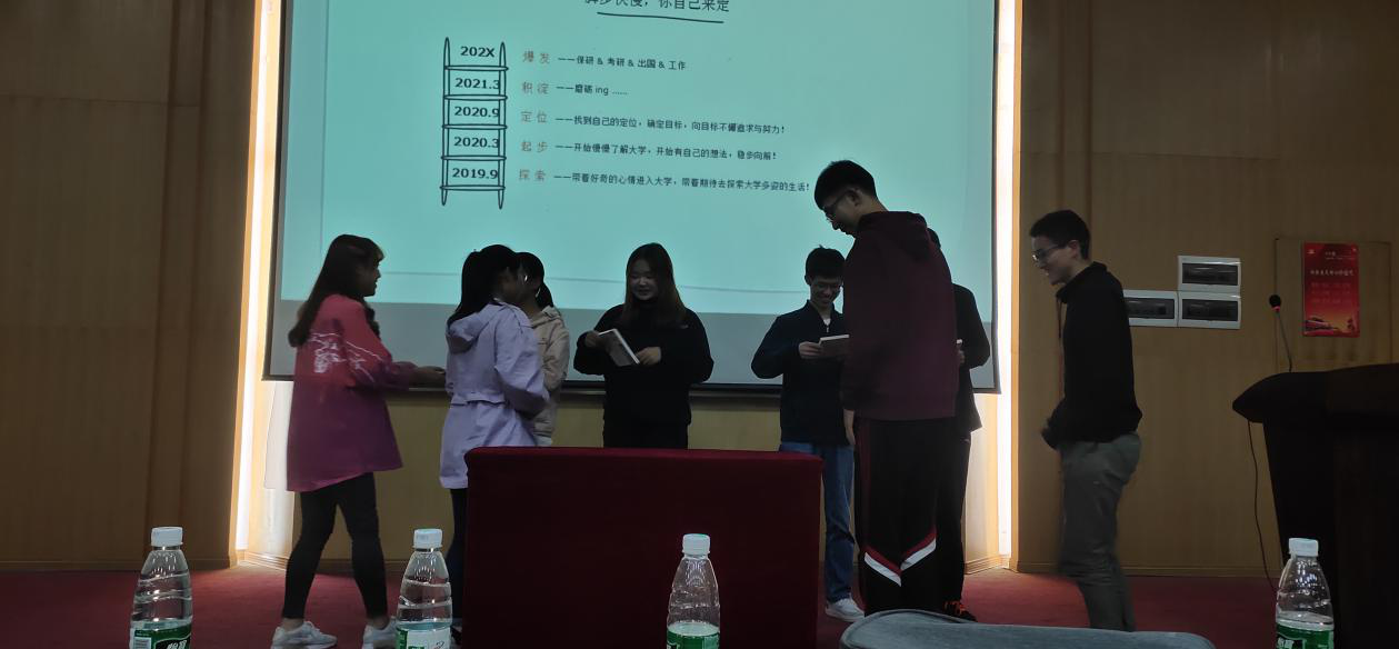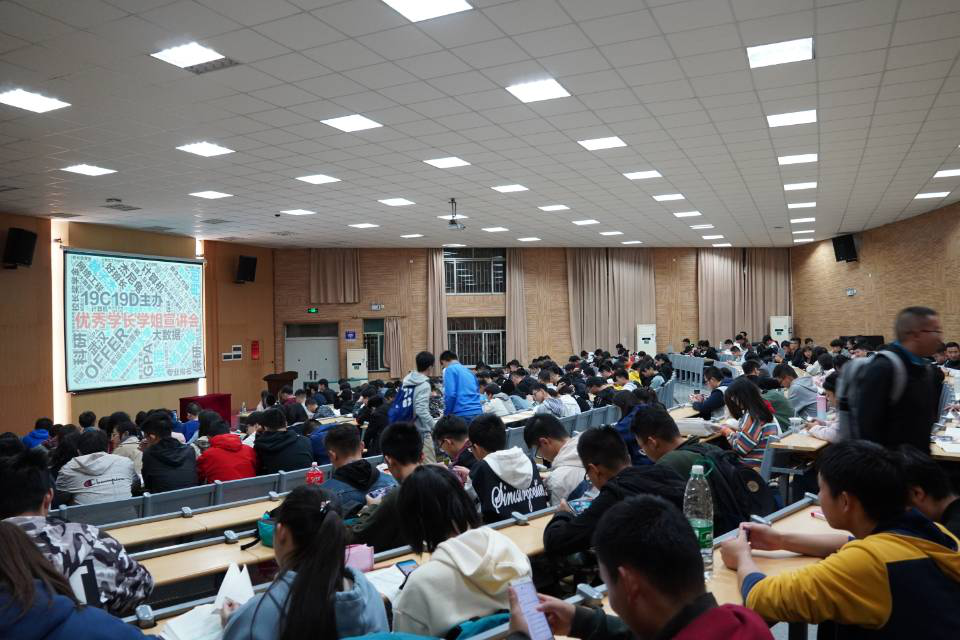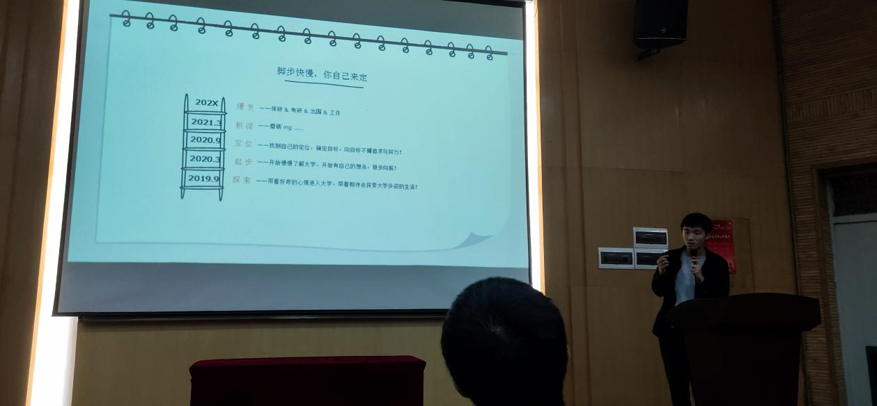 魏学长简洁凝练的宣讲介绍了保研、考研、工作的选择取舍。给我们大学四年大致的阶段性计划提出了建议。并介绍了考研保研所需要做的准备工作。如给了我们选择通识课的建议等。告诉我们班委和学生工作组织能做的工作和应该提升的能力,鼓励我们多出去走走增长见识。