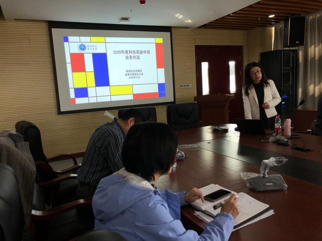 (通讯员:张丽)为进一步做好我校科学技术奖励的申报动员工作,10月23日下午科学技术发展院吴春明副院长带队到成人av 就成人av 、地信学院科技奖励申报等事宜进行了政策宣讲及业务交流。奖励办殷茵老师详细介绍了各类奖项的申报方式、注意事项、申报技巧等。随后老师们就相关问题进行了咨询和交流。