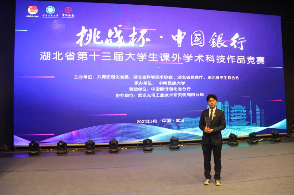 (通讯员:石剑峰)近日,湖北省第十三届“挑战杯·中国银行”大学生课外学术科技作品竞赛在中南民族大学举行。成人av 大数据专业学生团队研究课题“利用基于投射算子的遗传算法求解旅行商问题”斩获湖北省一等奖。团队成员为姚孔轩(队长)、孙伟祥、崔永川、何陆骐、邵弈凯、刘哲伟6名本科生,其中4人为大数据专业学生,李程俊副教授、王勇副教授担任指导老师。