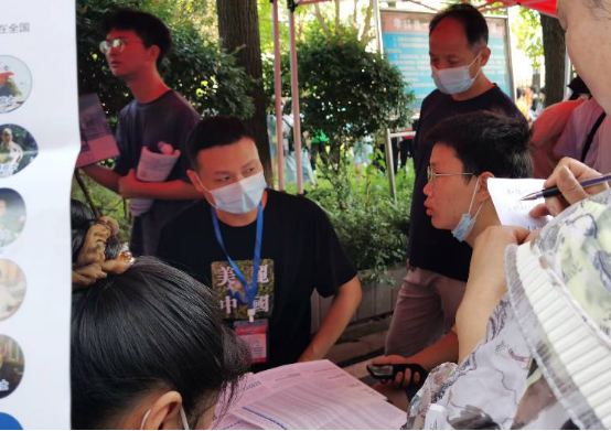 线下组的老师们顶着烈日,冒着酷暑跑点赶场,这是成人av 招宣人的“跑酷”日常,但大家干劲十足,人累心不累。黄燕霞老师说自己最大的感受是:“虽然第一天就淋了一身大雨,但看到很多学生和家长慕名找过来,深深感觉到很多工作做了和没做,用心做和随便做,效果就是不一样”。石剑峰老师说:“学院正以肉眼可见的速度越来越好,我们的展位经常C位出镜,人气越来越旺,这让我们计科人倍感骄傲和自豪”。