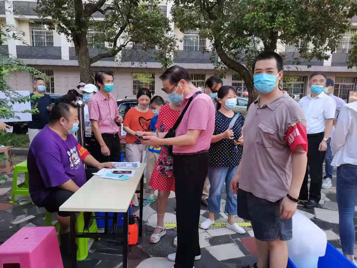 8月4日下午傅苑同志在开核酸证明过程中,遇到了自己的孩子