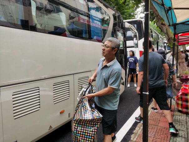 在搬迁过程中,班主任老师陈麒玉、康晓军、王群星、龚文引、姜鑫维、朱静、樊俊青、刘超、王媛妮、曹弘、刘然、陈晓宇、彭建怡在南望山校区组织同学们搬迁上车,黄燕霞老师在未来城校区做好接车安排。全体辅导员各司其职,与同学们一起战斗在搬迁工作第一线。早上7:40,第一批次的车辆装车完成,顺利驶向未来城校区。