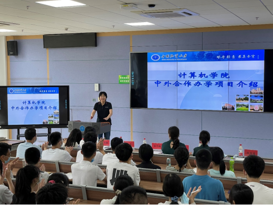 (通讯员:张园园)9月6日下午,计算机科学与技术中外合作办学项目2021级新生见面会在南望山校区教学综合楼C107教室隆重举行。国际教育学院副院长范陆薇,成人av 副院长张冬梅、党委副书记傅苑、数据科学与大数据技术系党支部书记宋维静、国际合作办公室老师、2021级兼职辅导员沈晨及2021级合作办学专业全体新生参加会议,会议由国际合作办公室主任黄燕霞主持。