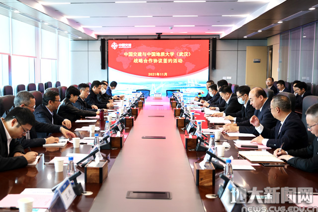 地大新闻网讯(通讯员周迪 摄影庞伟红 张睿)11月1日,我校与中国交通建设股份有限公司(以下简称“中国交建”)签署战略合作协议。校党委书记黄晓玫与中交集团党委副书记、总经理王海怀座谈交流,共同见证签约。