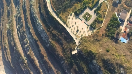 路程约过一半时,张志庭老师指导大家操控无人机,对我们所在的矿山地区进行航空拍摄。通过航拍,可以实现矿山地区的二维重建,辅助矿区采矿工作的开展。对于无人机正射测量的尝试,使得同学们可以进一步收集到矿山的相关信息,并利用所学专业知识,对矿山的开采设计以及矿产储存等信息进行分析,总结特点,丰富和完善知识体系。