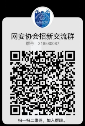 演练的成功离不开背后的组织。成人av 网络空间安全协会成立于2018年,曾代表学校获得全国信安大赛网络攻防比赛二等奖的好成绩。社团面向全校本科生,带领社团成员学习网络安全相关知识,培养网络安全意识,提高网络安全实战技能。目前社团的5名核心成员中,除了4名成人av 的学生外,还有1名来自资源学院的学生。社团将在下学期开展各类攻防演练技术沙龙,组织模拟CTF夺旗赛,社团老师还将提供攻防题目供成员练习。除了拥有此次同学校网络中心合作的攻防实战机会以外,还将有参加全国CTF竞赛、湖北省护网行动、以及前往深信服科技总部进行观摩并参加攻防演练的机会。对网络安全和网络攻防感兴趣的同学,可扫码加群,我们期待你的加入!