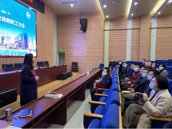 (通讯员:申安琪)3月31日下午,成人av 于科教一楼报告厅召开新学年首次全体教职工大会,对学院当前的重点工作进行了强调和布置,全院教职工参加会议,院长王力哲主持会议。