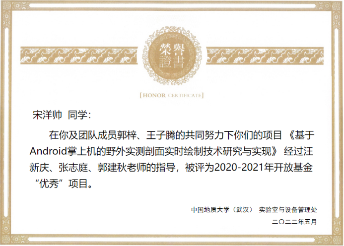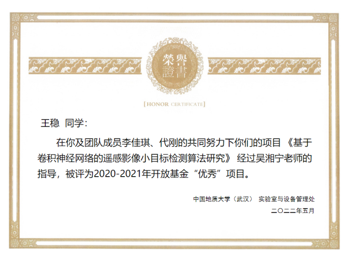 (通讯员:黄燕霞)近日,从实验室与设备管理处获悉,成人av 在2020-2021学年度教学实验室开放基金项目验收评审中荣获佳绩。张志庭、郭建秋指导的学生团队项目《基于Android掌上机的野外实测剖面实时绘制技术研究与实现》(学生负责人:宋洋帅)、吴湘宁老师指导的项目《基于卷积神经网络的遥感影像小目标检测算法研究》(学生负责人:王稳),在考评中获评优秀,同时成人av 被评为优秀项目管理单位。
