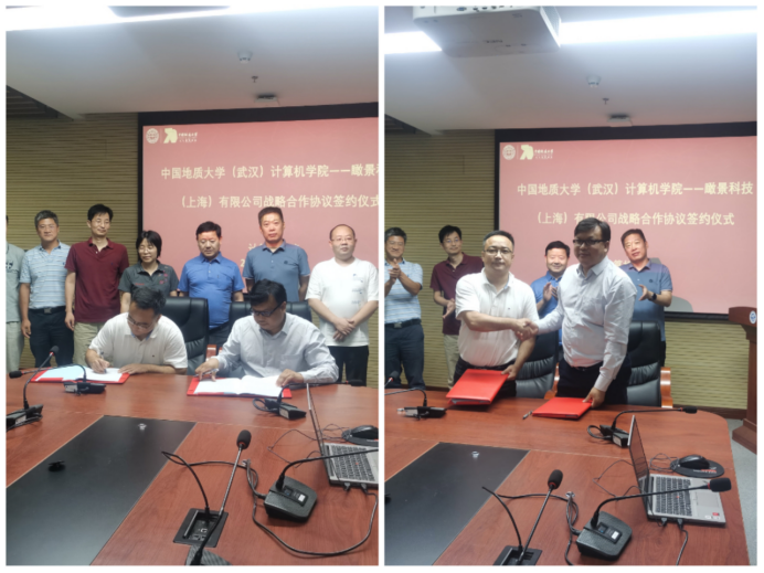 最后王力哲与艾席勇分别代表与会双方签订了战略合作协议。本次合作包括:瞰景公司向地大成人av 捐赠价值50万元的Smart3D软件,双方深度开展教学、科研、新产品研发等方面的合作、人才交流学习等。