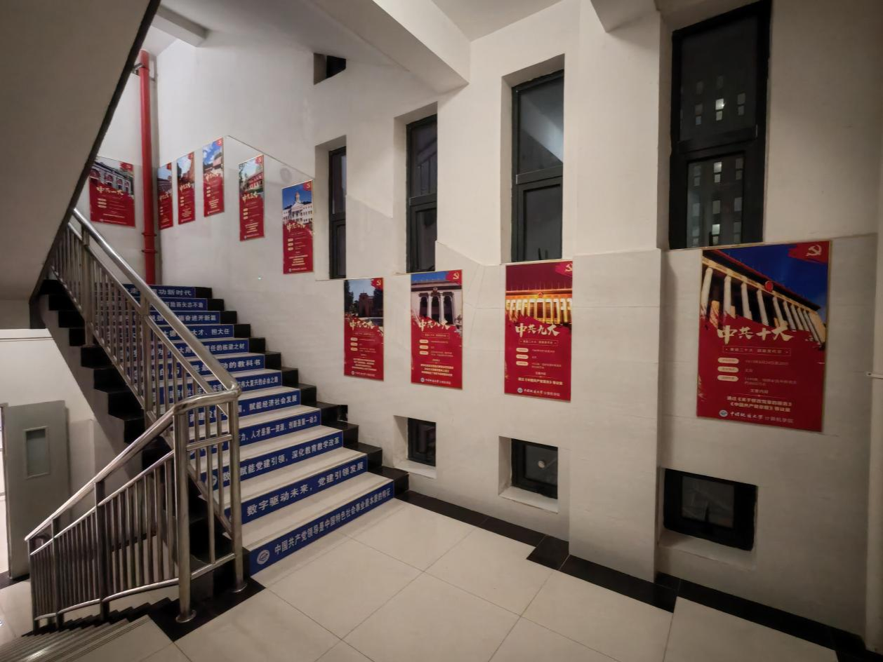 注重宿舍园区建设,在一组团三栋男生宿舍,打造特色党建园区。将学习党的二十大特色主题教育融入园区环境,将“回顾·伟大时刻”特色海报进行展出。制作学院“红色信息工程师”特色系列标语、特色活动剪影照片墙和“卓越之路 攀登高峰”榜样专栏。