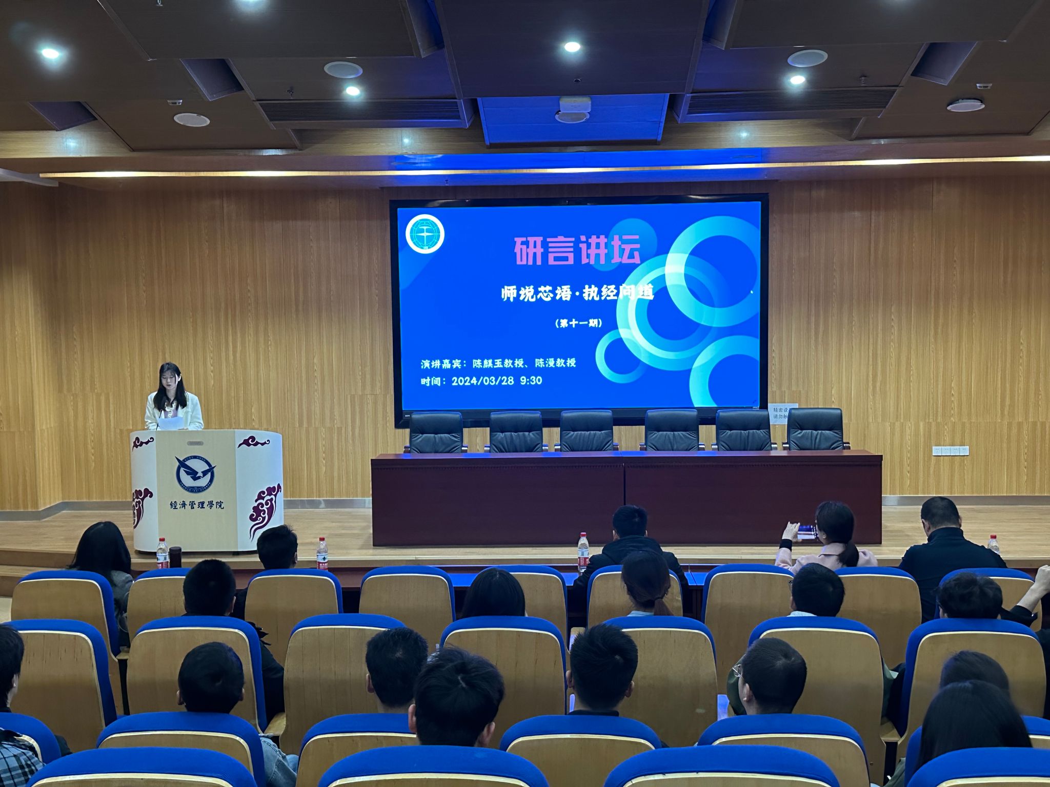 为激发研究生在跨学科研究方面的创新思维与对学术研究的热情,进一步拓宽学术视野,提升自我认知和发展规划能力,研究生院(党委研究生工作部)主办,成人av 与经济管理学院联合承办第十一期“研言讲坛”暨成人av 第三期“师说芯语”导学沙龙, 2024年3月28日在未来城校区崇信楼110报告厅举办。本次活动成人av 陈麒玉教授、经济管理学院陈漫教授为主讲嘉宾, 党委研究生工作部挂职副部长蒙冕模、成人av 党委副书记林小艳、经济管理学院党委副书记李纪亮,两学院100余名研究生参加。