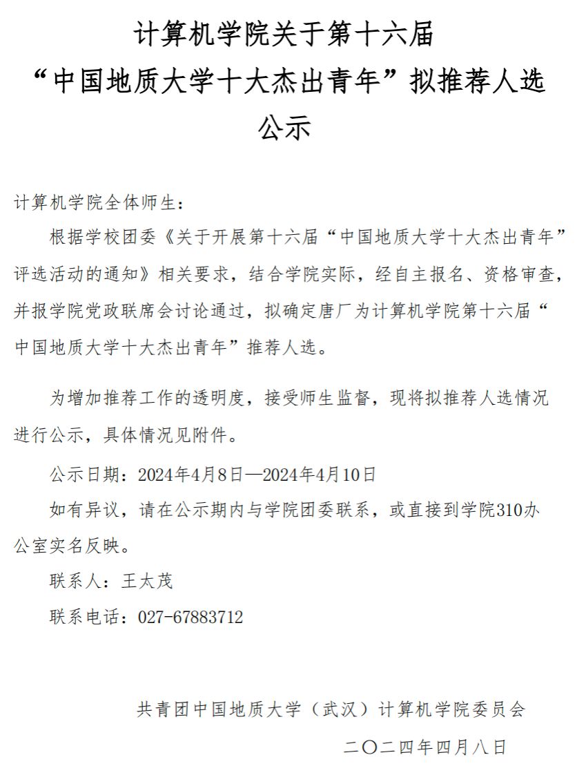 成人av 关于第十六届“中国地质大学十大杰出青年”拟推荐人选公示