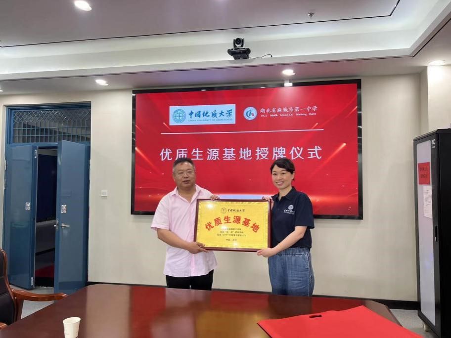 5月21日上午,学院党委副书记林小艳、信息安全系党支部书记马钊、空间信息与数字技术专业教师汪校锋、团委副书记闫维蓉、2023级本科生冯仕杰一行赴麻城一中开展招生宣传,并举行“优质生源基地”授牌仪式。麻城一中校长吴宏文、副校长曾黎星以及党建办主任李国庆,政教主任、高三年级主任王辉,高三年级副主任胡欣及部分高三班主任参加活动。