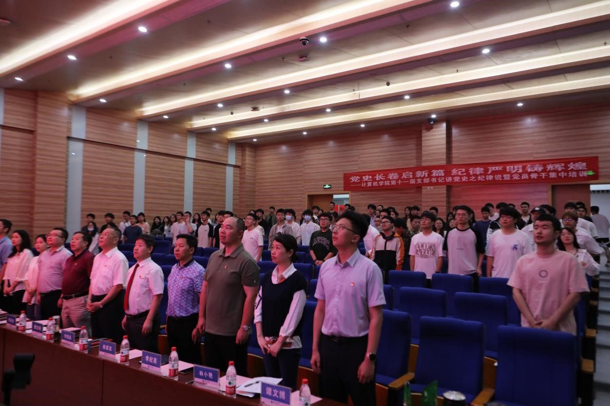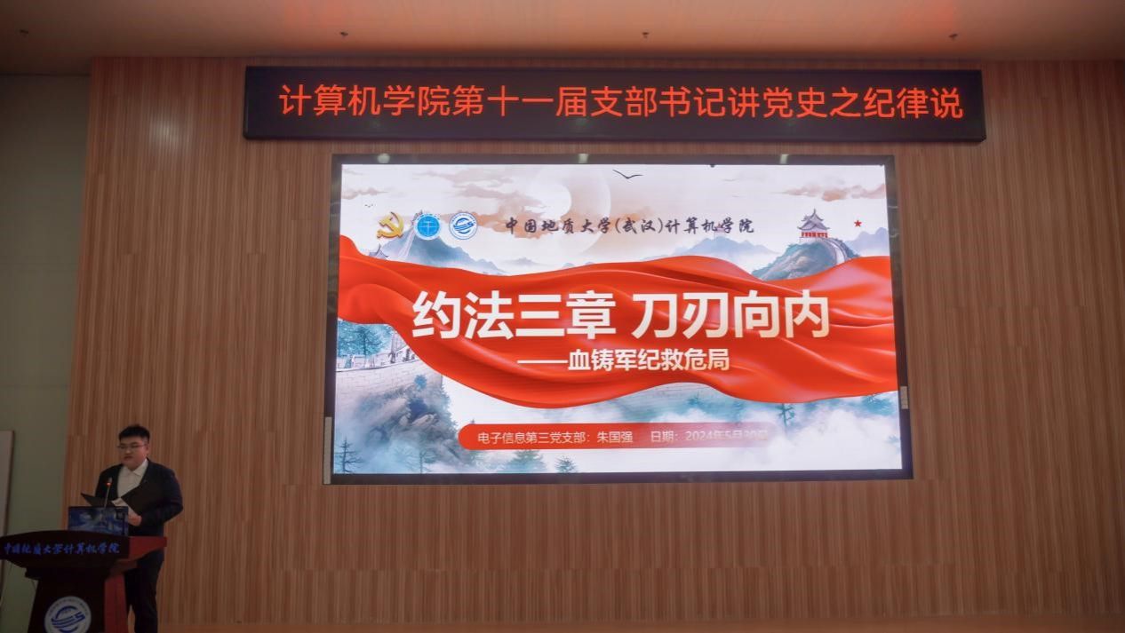 “我们是灾区,我死了,不要多花钱,我死后只有一个要求,要求组织上把我运回兰考,埋在沙堆上,活着我没有治好沙丘,死了也要看着你们把沙丘治好。”......舞台上,成人av 空间信息工程党支部和经济管理学院生态文明研究生党支部的党员代表们生动演绎着《焦裕禄》,他们以一场独具特色的话剧将现场气氛推向了高潮,生动诠释了“亲民爱民、艰苦奋斗、科学求实、迎难而上、无私奉献”的“焦裕禄精神”。5月30日下午,成人av 在学院126报告厅举办第十一届支部书记讲党史之纪律说暨党员骨干集中培训活动。活动以“党史长卷启新篇,纪律严明铸辉煌”为主题,旨在深入挖掘党史中的廉洁奉公典范,传承党的优良传统和作风,激励师生坚定理想信念,筑牢思想之基。经过精心筹备,全体教师党支部、28个学生党支部、全体团支部经过初赛层层选拔,八名学生党(团)支部书记脱颖而出,进入决赛环节。同时,获奖的教师党支部书记代表马钊老师、校友代表肖飞龙以及成人av 党委书记李国昌讲授了精彩的示范党课。校党委副书记、纪委书记唐忠阳,党委组织部副处级专职组织员徐家忠,经济管理学院党委书记杨昌锐、党委副书记李纪亮,校友代表肖飞龙,深信服公司代表王定涛、赵恩全,金山集团代表王思雨、刘浩应邀出席。成人av 党委书记李国昌、党委副书记林小艳、辅导员谭文博和进入复赛的学生党、团支部代表现场观摩。学生党建办公室叶岭岚担任活动主持。