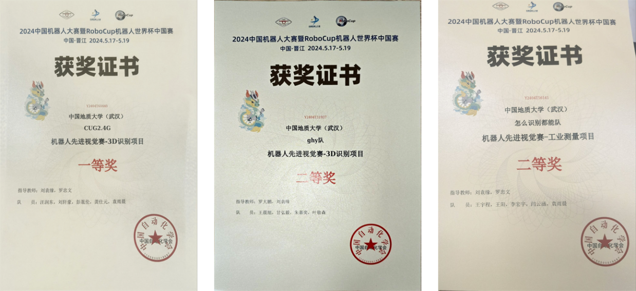 5月17-19日,2024年“中国机器人大赛暨RoboCup机器人世界杯中国赛”(下文简称:中国机器人大赛)在福建晋江国际会展中心落下帷幕。我校成人av 刘袁缘老师、罗忠文老师和机械与电子信息学院罗大鹏老师指导的三支学生团队参赛,获得机器人先进视觉赛3D识别项目一等奖、二等奖和机器人先进视觉赛工业测量项目二等奖的优异成绩。