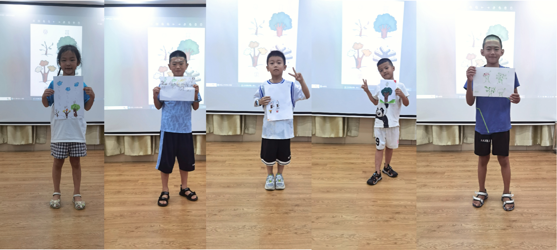 此外,为了让小朋友们更深入触摸植物的奥秘,团队成员运用“看图猜意”和“绘出一年四季”两个环节,既能提升小朋友们的论述能力和逻辑思维,也让我们更直观地看到小朋友们心中植物一年四季的更迭变化,真正触摸到小朋友们的小小天地。