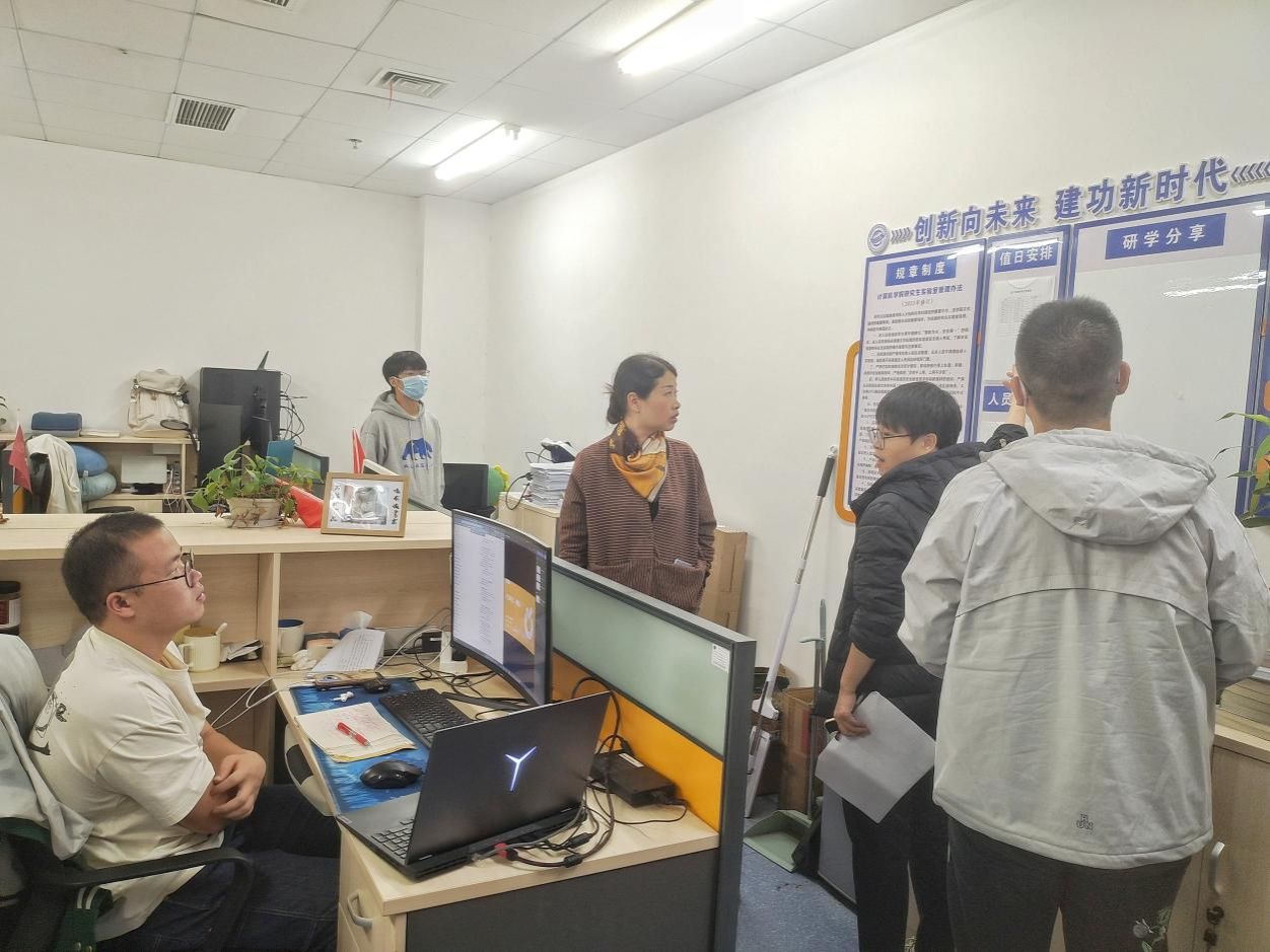 为深入推进研学空间建设,增强研究生安全教育管理,学院于2024年10月24日下午,开展第65期“我的实验室我呵护”实验室走访活动,成人av 副院长胡成玉、党委副书记林小艳、研究生辅导员李欢欢和研究生秘书黄果走访全院46间研究生实验室,了解同学们的科研进展和学习状态,巡查实验室安全卫生和日常管理情况。