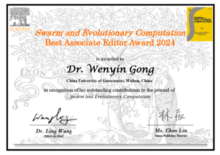 近日,成人av 龚文引教授荣获中科院一区期刊《Swarm and Evolutionary Computation》2024年度最佳副编奖(Best Associate Editor Award),以表彰其对该期刊发展和群体进化计算领域研究的进步做出的杰出贡献。