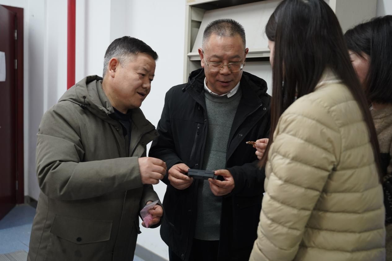 校党委副书记唐忠阳、院党委书记李国昌、院分工会主席梁庆中亲临现场,慰问并参与了这场文化盛宴,为女教师们送去了节日的温暖与关怀。“每一片螺钿都是时光的切片”,唐书记轻抚盒中流光溢彩的螺钿薄片,将承载着殷切祝福的材料递到女教师们手中。