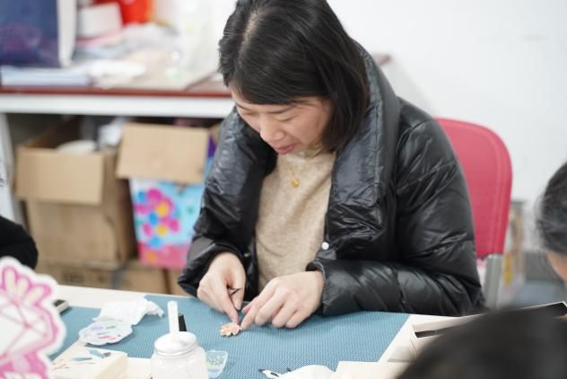 与未来城校区管理办公室高盼老师一行女教师齐聚一堂,在非遗螺钿工艺的星河里,以指尖触摸千年文明的温度,一起为即将到来的纪念“三八”国际妇女节编织出独特的文化献礼。