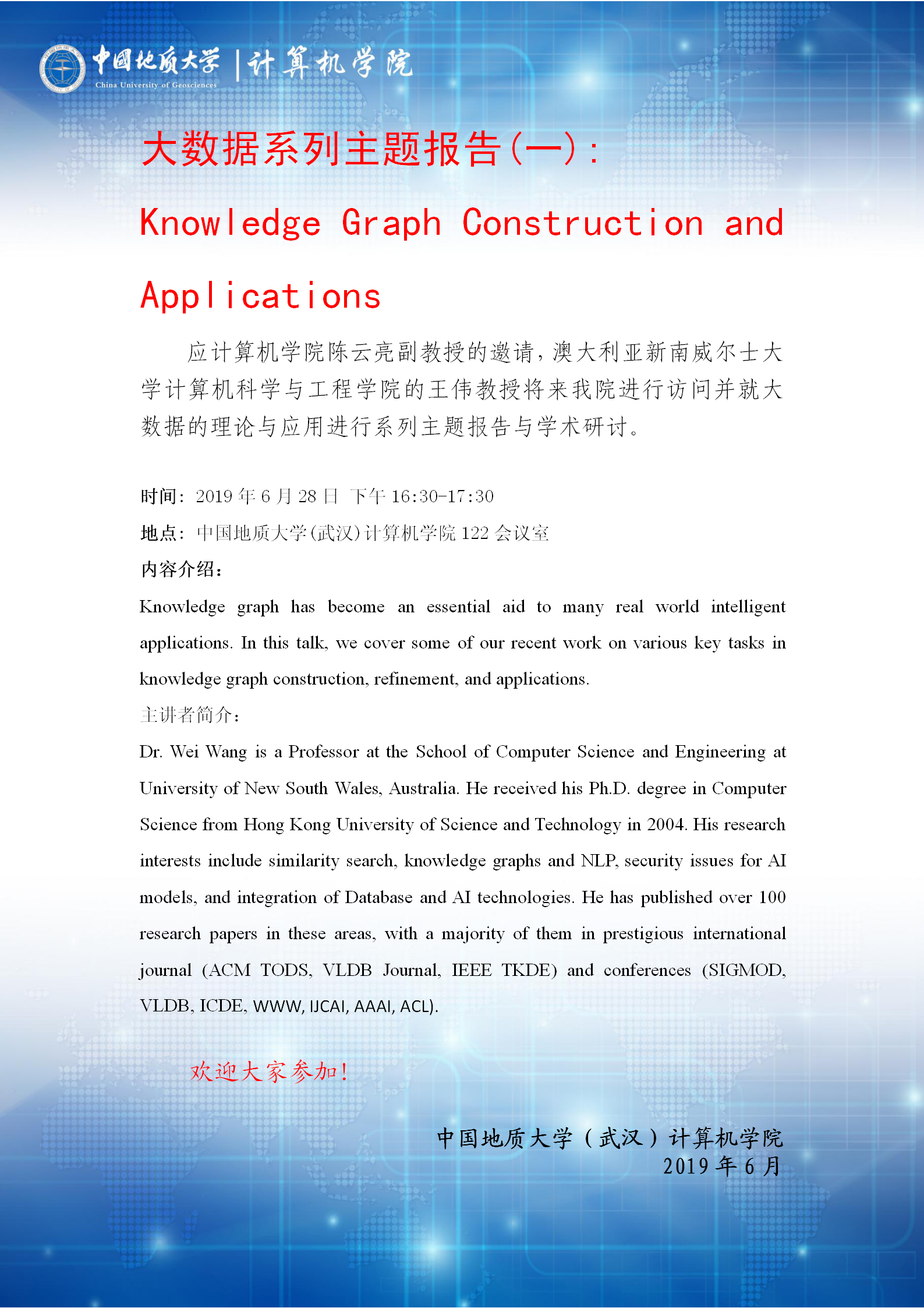 学术报告——澳大利亚新南威尔士大学王伟教授学术报告