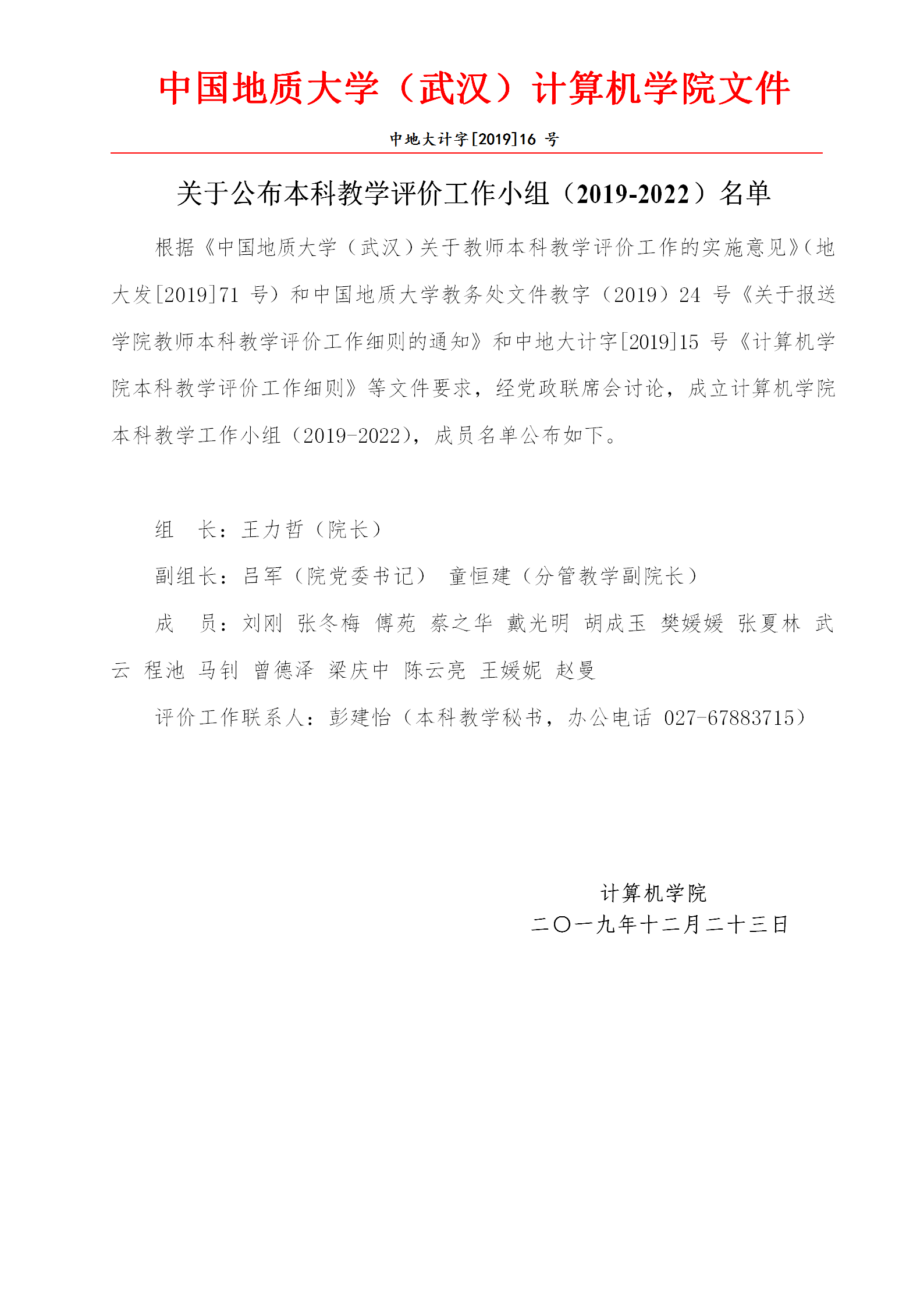 成人av 关于公布本科教学评价工作小组(2019-2022)名单