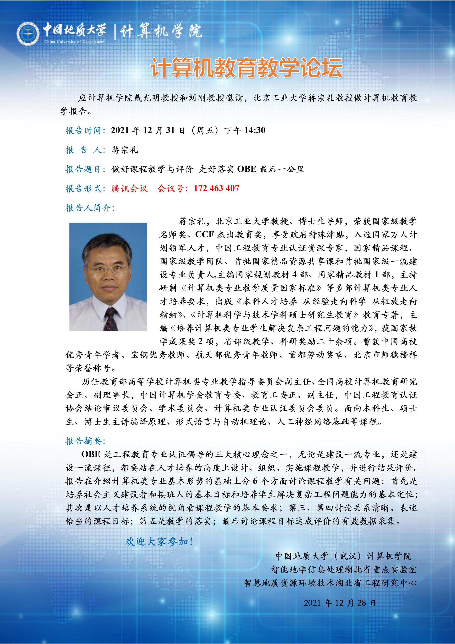 计算机教育教学论坛:国家级教学名师北京工业大学蒋宗礼讲座