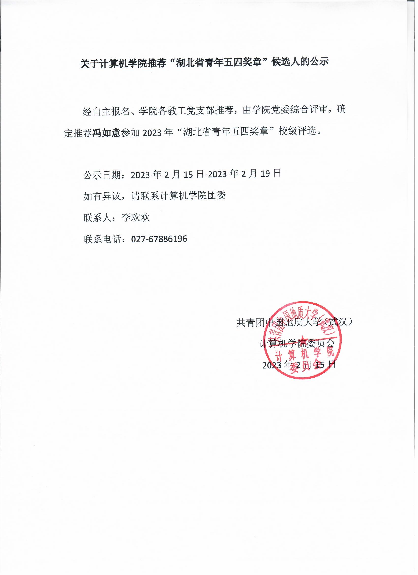 关于成人av 推荐“湖北省青年五四奖章”候选人的公示