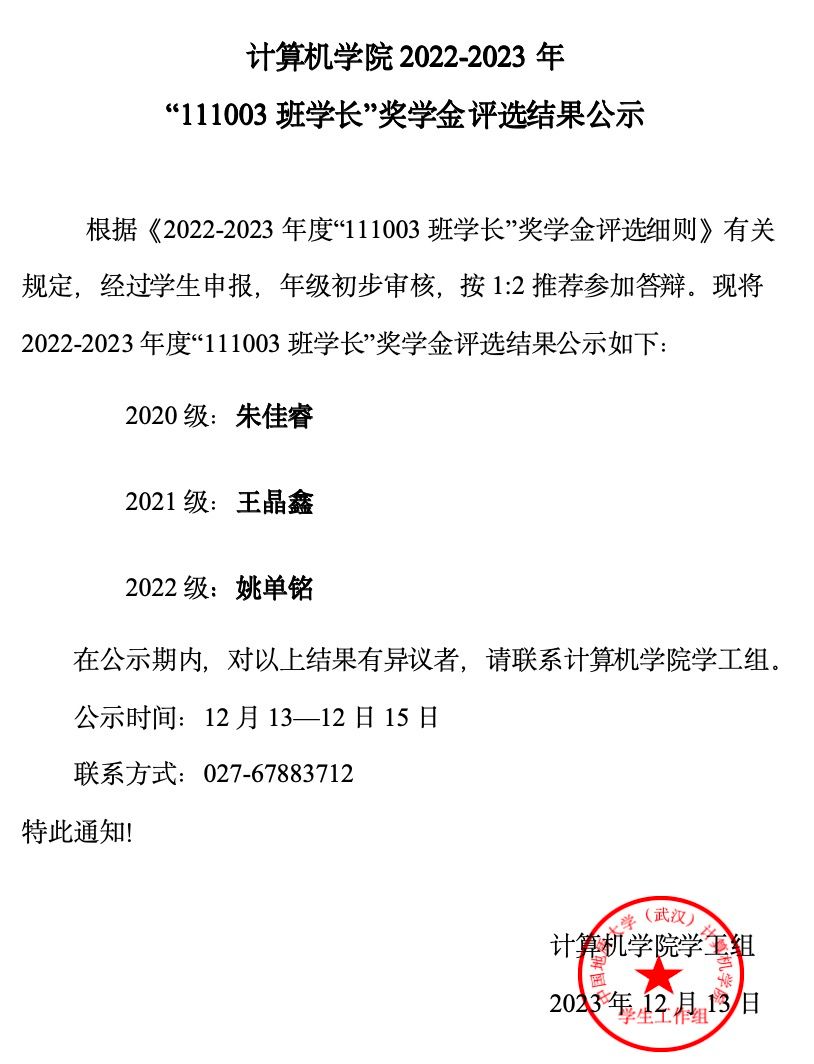 成人av 2022-2023年 “111003班学长”奖学金评选结果公示