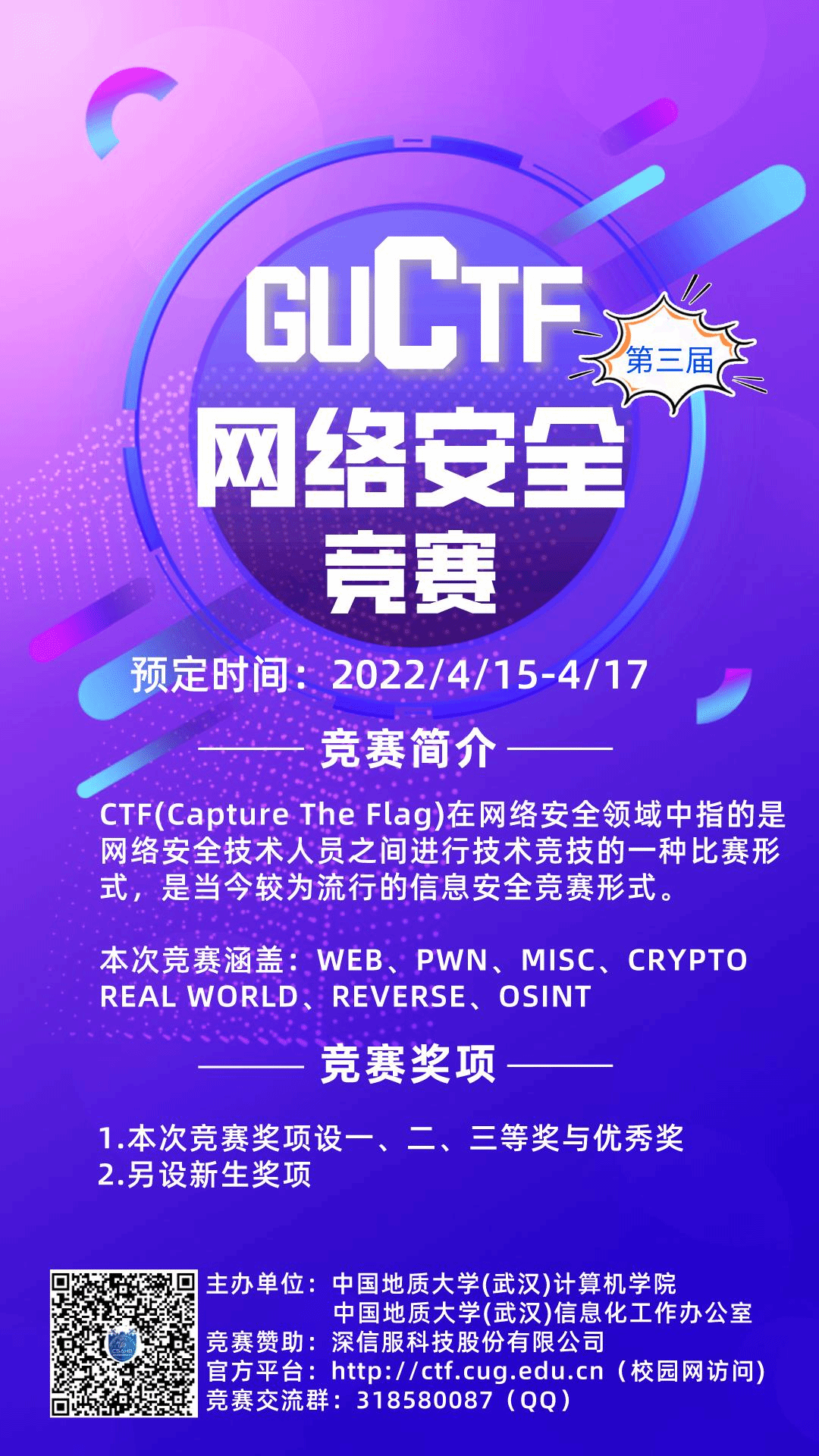 CTF(Capture The Flag)又称“夺旗赛”,是网络安全技术人员之间的竞技比赛。起源于1996年DEFCON全球黑客大会,目前已成为全球范围网络安全领域的主流竞赛。国内知名赛事有,由教育部高等学校信息安全专业教学指导委员会主办被称为CTF国赛的“全国大学生信息安全竞赛创新实践能力赛”;由中国网络空间安全协会主办的“XCTF全国联赛”;由阿里巴巴公司组织主办的面向在校学生的“AliCTF”等。北邮、杭电、西电等高校组织的校内CTF竞赛在国内也享有较高知名度。