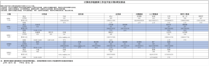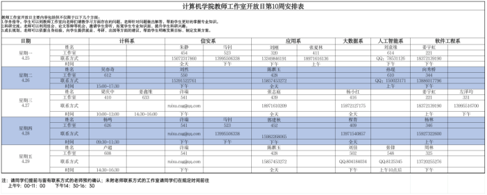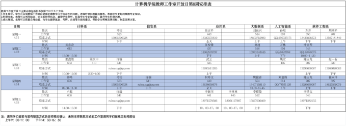 请大家仔细阅读老师们的时间安排,也可以提前进行预约,希望同学们能够好好珍惜同老师们近距离交流的机会,多跟老师们沟通,提升自己!