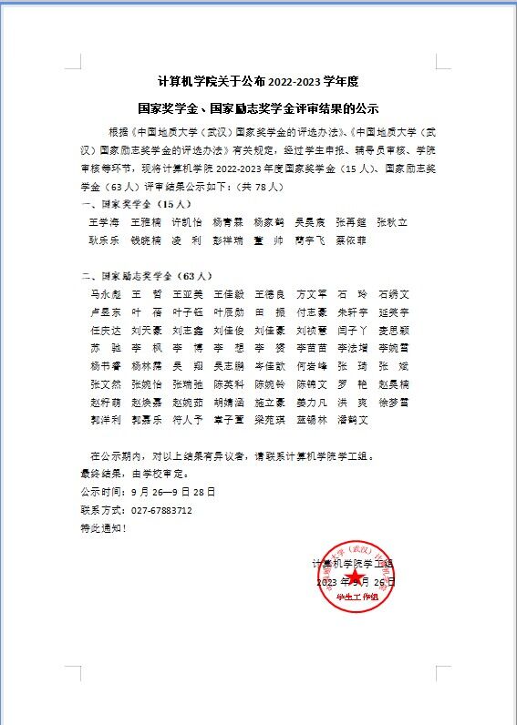 成人av 关于公布2022-2023学年度国家奖学金、国家励志奖学金评审结果的公示