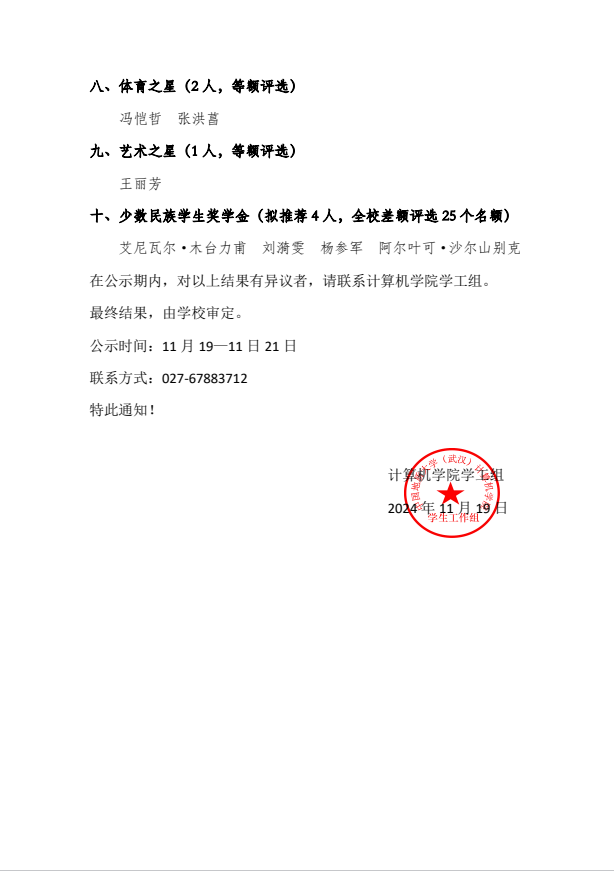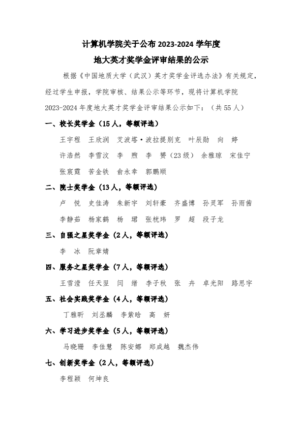 成人av 关于公布2023-2024学年度地大英才奖学金评审结果的公示