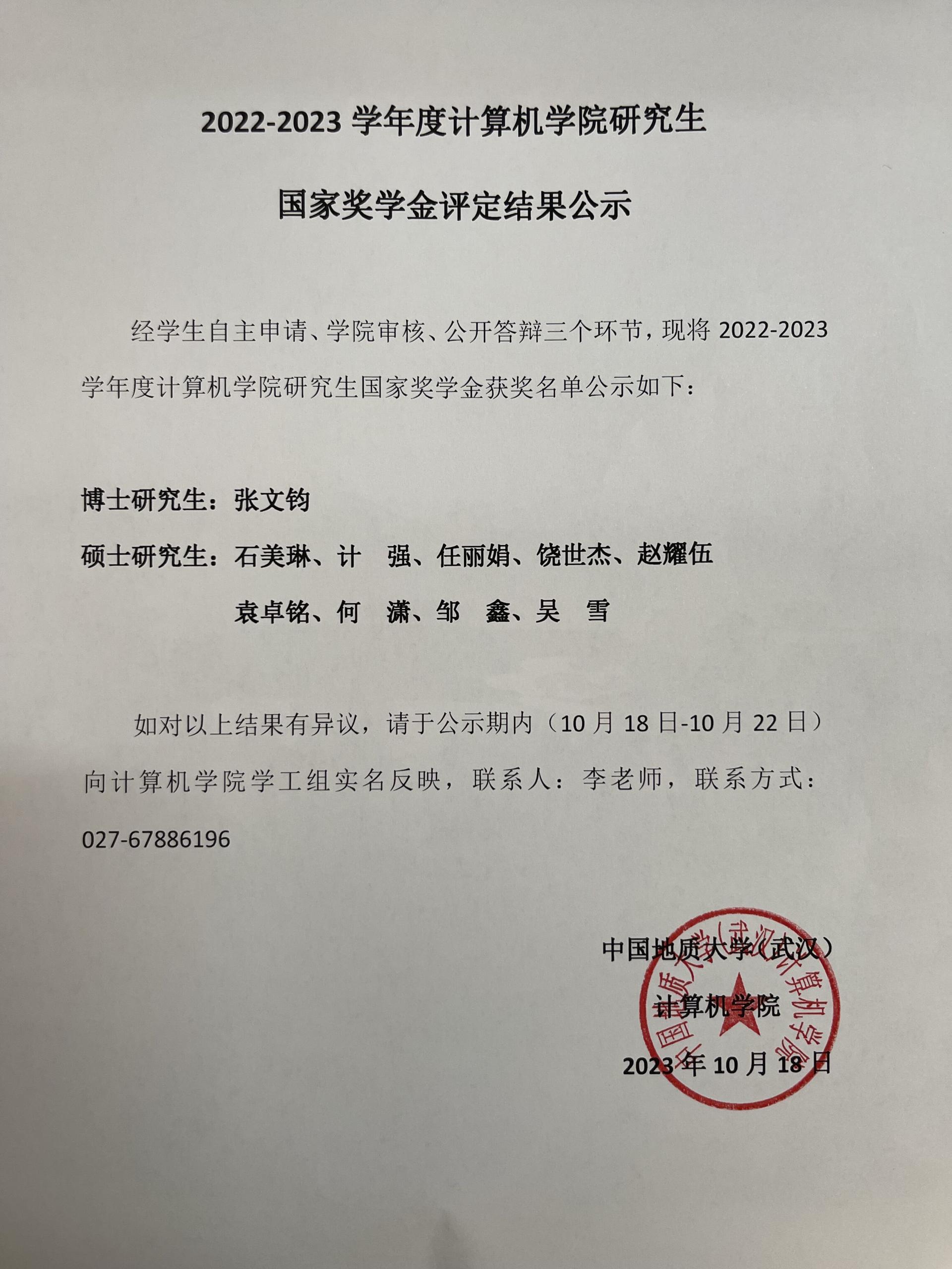 2022-2023学年度成人av 研究生国家奖学金结果公示