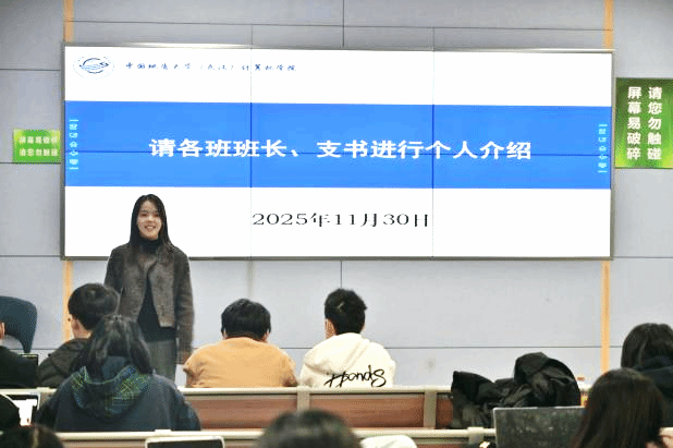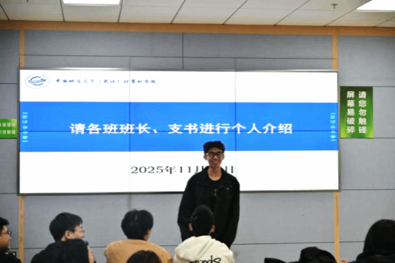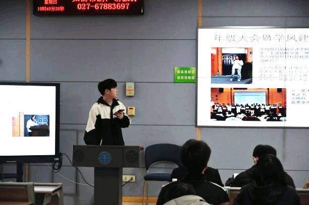 随后,各班班长、团支书按“三句个人介绍+一句班级介绍+一句工作评价”的形式逐一进行自我介绍。大家在分享班级工作亮点的同时,也反馈了学生活动中存在的一些实际问题,为后续工作优化提供了参考。