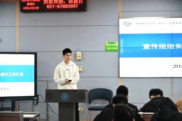 学生服务组四个小组依次进行工作汇报。综合服务组明确周报发布和晚点名规范等日常管理要求,着力提升工作规范性;学风建设组重点强调课堂考勤纪律与自主自习材料提交标准,全力筑牢学风建设根基;文体活动组回顾了未来城六院新生“南望杯”篮球的成果,明确了早操交叉点名纪律方案,并承诺为班级活动提供专业化的方案支持;宣传组则介绍了当前的核心工作——各类宣传稿撰写与海报制作,并表达与各班团支书和宣传委员共创优质宣传内容的意愿。
