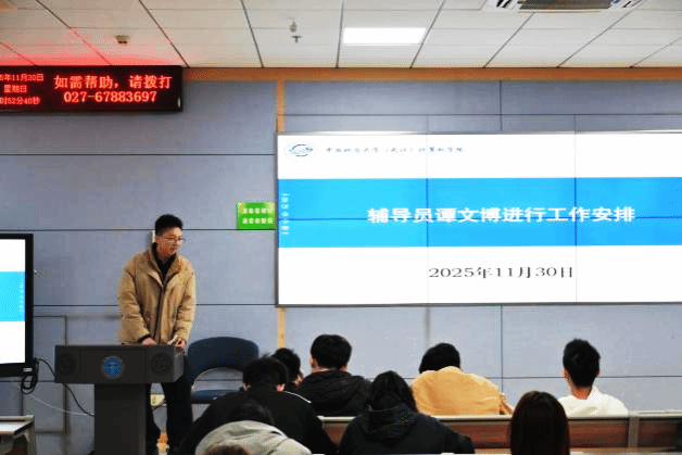 为强化2025级本科生学生服务组与各班级联动协作,破解日常管理难题,11月30日晚,学院在东教C203召开学生骨干工作会议。2025级辅导员谭文博、2025级班长、团支书及学生服务组骨干成员参会,2025级学生熊飞翔主持。