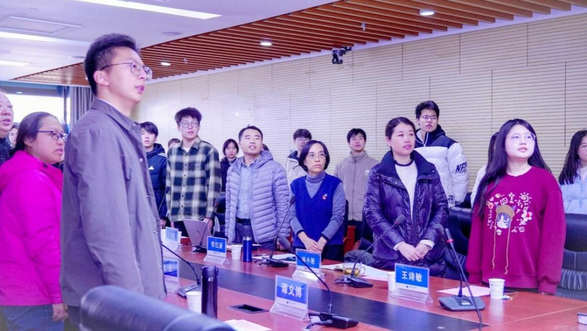 随后,谭文博对成人av 学生党建办公室年度工作进行汇报,分别从夯实基础,学生党建规范有序;创新亮点,理论学习与仪式教育创新提质;理论实践结合,坚持党建引领三个板块进行汇报。未来学生党建办公室将继续优化党员教育体系,持续提升学生党建工作质量,为学院高质量发展提供坚强保障。理论政策部副部长李紫晗汇报2025年度主题党日规范化建设专题工作,对年度主题党日巡视情况进行通报并强调主题党日材料提交要求。