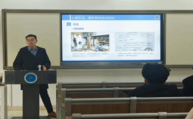 学院始终将安全工作摆在首位,贯穿学期初各项教育引导活动之中。在宿舍与实验室走访中,老师们化身“安全卫士”,对用电规范、消防设施、内务卫生等进行细致排查,针对隐患现场提出整改意见,“人走断电”、“警惕网络诈骗”等叮嘱不绝于耳,切实守护学生生命财产安全。院领导在各年级的新学期主题班会中,均将“五分钟安全”“五分钟纪律”作为首项环节,通过文件学习与案例讲解,普及安全知识与心理调适方法,强化学生的安全防范与规矩意识,引导全体学生树牢安全底线意识,共同维护安全、整洁、文明、和谐的校园环境。