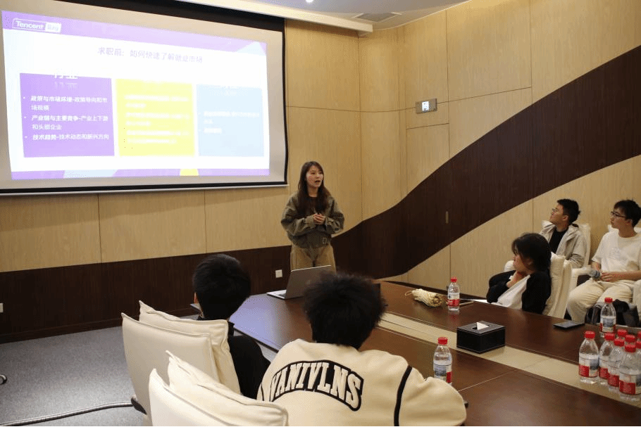 参观结束后,腾讯武汉地区校园招聘团队与同学们进行了深入的座谈交流。招聘负责人详细介绍了校招流程、技术岗位能力要求及职业发展通道。在互动环节,同学们围绕“算法岗实习需要具备哪些项目经验”“如何应对AI技术冲击”以及“如何在激烈校招中凸显技术优势”等实际问题积极提问,现场交流气氛热烈。