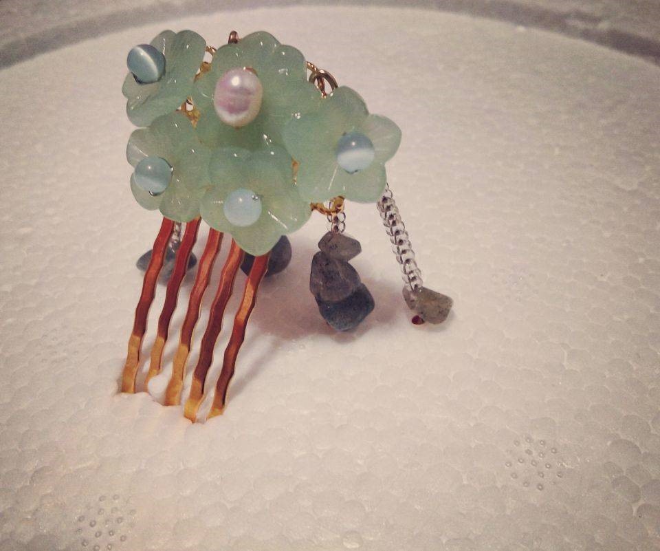 至于怎么想到去做簪子的,黄翠同学说到:“我本身比较喜欢汉服,簪子本身又是一种挺能发挥创意又有实用价值的饰品,在家闲暇比较多,就想自己动手试试。近年来,汉服热兴起,有一句很真实的话,小时候披着床单的孩子长大了,汉服不再活在课本里,存在影视剧里,大街上的衣袂飘飞,珠钗叮当也不再是奇装异服了。我的这些小作品,和古人们巧夺天工的设计比起来,也实在不值一提。”