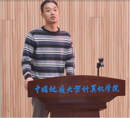 2018级地学信息工程博士研究生王玥玮代表在校生发言。他结合过往的科研成长经历,与新生分享三点体会:一是要行成于思,千锤百炼,坚韧不拔;二是要沟通合作,互相学习,有效交流;三是要勇于尝试,返躬内省,前覆后戒。希望大家锚定方向、砥砺前行,度过充实又有意义的研究生生涯。
