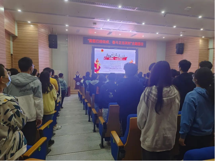 为深入学习党的二十大报告,深刻领悟党的二十大精神,切实把会议精神和行动统一起来,为中华民族伟大复兴的新征程贡献青春力量。近期,成人av 2021级10个团支部、2022级11个团支部分别举办了以“蓝图已经绘成,奋斗正当其时”为主题的大型团日活动。本次团日活动于未来城校区成人av 大楼126报告厅和南望山校区教三楼111教室举行,全体团员参会,会议由院团委学生会组织部副部长郭洋利主持。