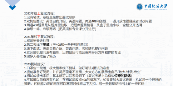 不仅如此,由2019级班主任曾艺、石剑锋担任模拟面试考官线上线下齐上阵,协助同学们进行全流程复试模拟。模拟面试从英文自我介绍开始,包括专业理论知识问答、学术创新和实践经历等诸多方面,进一步考验了学生的专业能力、应变能力和综合素质。同时,2019级辅导员闫维蓉将老师们提出的复试经验进行梳理总结,其中包括着装、奖项材料、英文自我介绍、联系导师等复试要点。