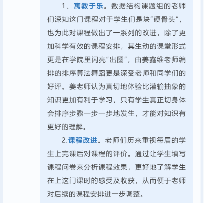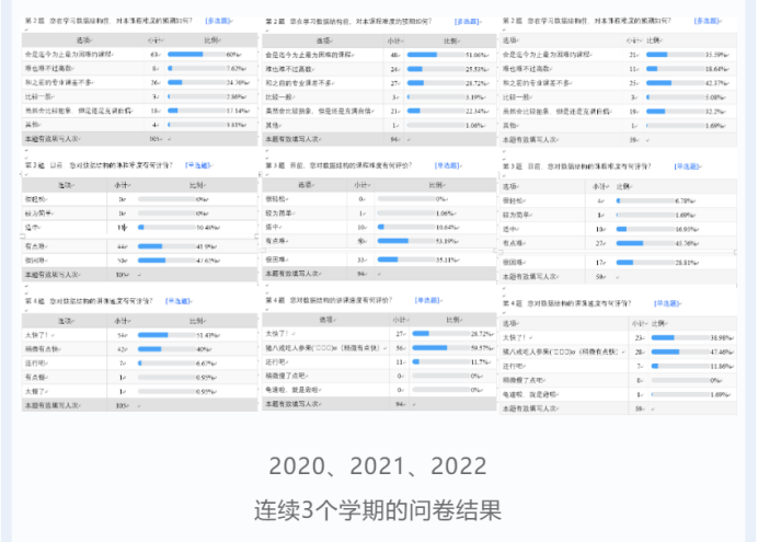 珍惜时光好好学习,掌握知识本领,树立专业报国的价值观,为解决“卡脖子”技术贡献自己的计科力量。成人av 多年以来一以贯之的坚持做的一件事就是构建专业思政视域下的计科三全育人体系。紧抓育人“指挥棒”,直面育人“新挑战”,做强育人“合力军”,打造学科精神培育网。数据结构课题组的师生一起努力,共同铸造了这颗耸立于计算机科学海洋中的参天大树。在时间的洗礼和技术的涵养下,数据结构教学体系“枝繁叶茂”,在计算机科学的世界中不断精进!