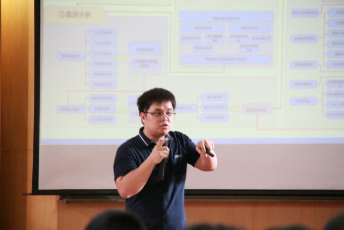 深信服科技股份有限公司华中区安服主管谭安宁围绕信息安全的概念和重要性展开介绍,并举例说明信息安全在国家安全中的地位,极大地激发了学生对信息安全的学习兴趣。
