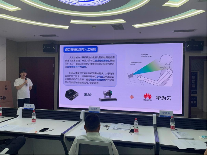前期,成人av 组织了校内初选,五个项目脱颖而出晋级校赛,分别是基于华为云pass的语音合成应用、基于端云协同的疲劳驾驶识别应用、端云协同疲劳驾驶实时检测、基于昇思Mindspore的医学图像分割应用、地学大数据共享服务平台。比赛现场,入围参赛队从项目背景、产品创新、商业模式、教育引领等多维度全方位展示本项目情况。各参赛项目团队以高质量的内容展示、自信得体的台风体现了我校学子创新创业风采,彰显了学校近年来创新创业教育改革的成果,为大家上演了一场精彩的比赛,以下是各个团队的答辩现场。