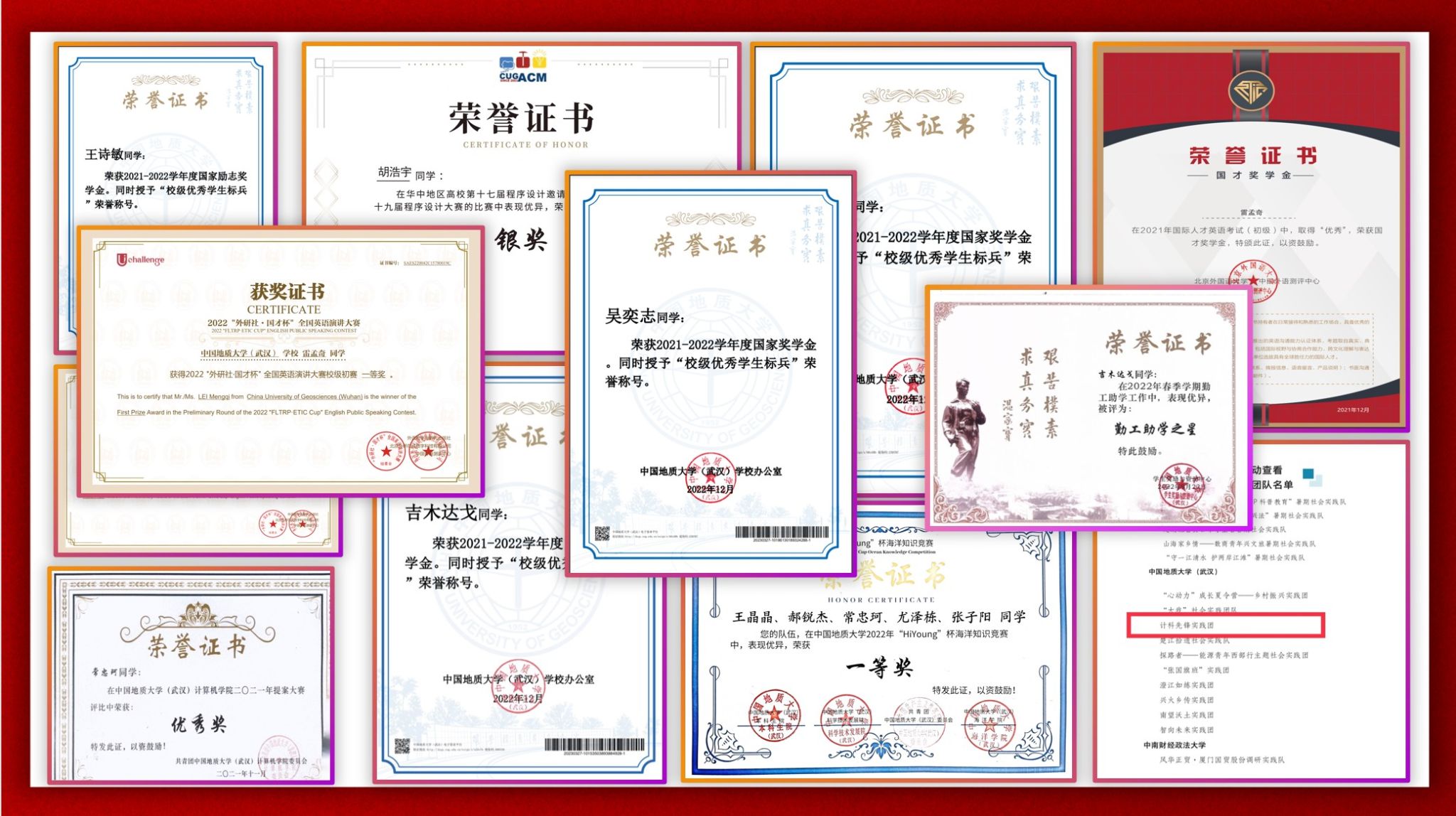 同学们的活力,在绚丽多彩的比赛与活动中全面爆发。那是编程大赛的思维火花,是英语演讲比赛中的口语魅力,是社会实践路上的汗水与充实,是手握国家奖学金、国家励志奖学金证书的喜悦与自豪。