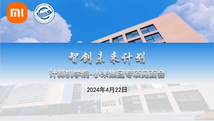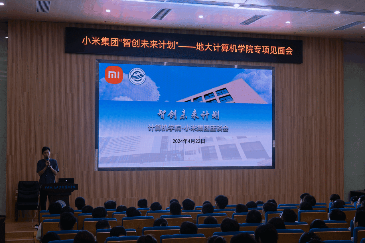 2024年4月22日,成人av 联合小米集团在学院126报告厅开展“智创未来计划”专项见面会。小米集团技术委武汉研发中心总经理梁荣堂、小米集团技术委武汉研发中心副总经理周代国、小米集团技术委武汉研发中心副总经理王军伟、小米集团技术委武汉研发中心小爱算法团队负责人张帆一行四人参加,学院2021级本科生,2022级研究生400余人参加,专项见面会由成人av 辅导员谭文博主持。